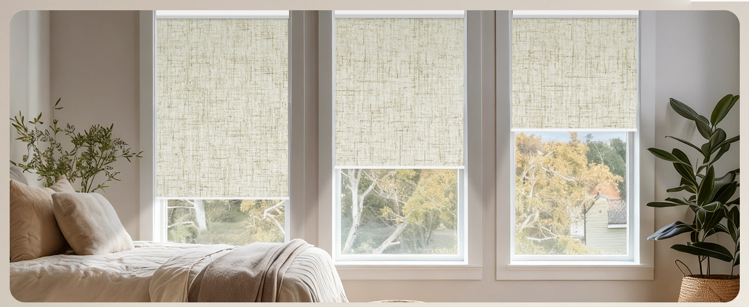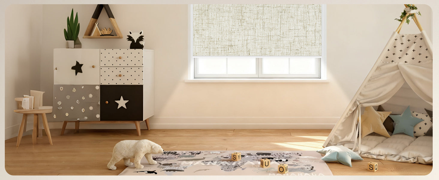 The durable blackout polyester fabric blocks 100% of natural light, reduces UV exposure, and ensures privacy. If you are unsure about the colour, we recommend ordering a fabric sample swatch first.