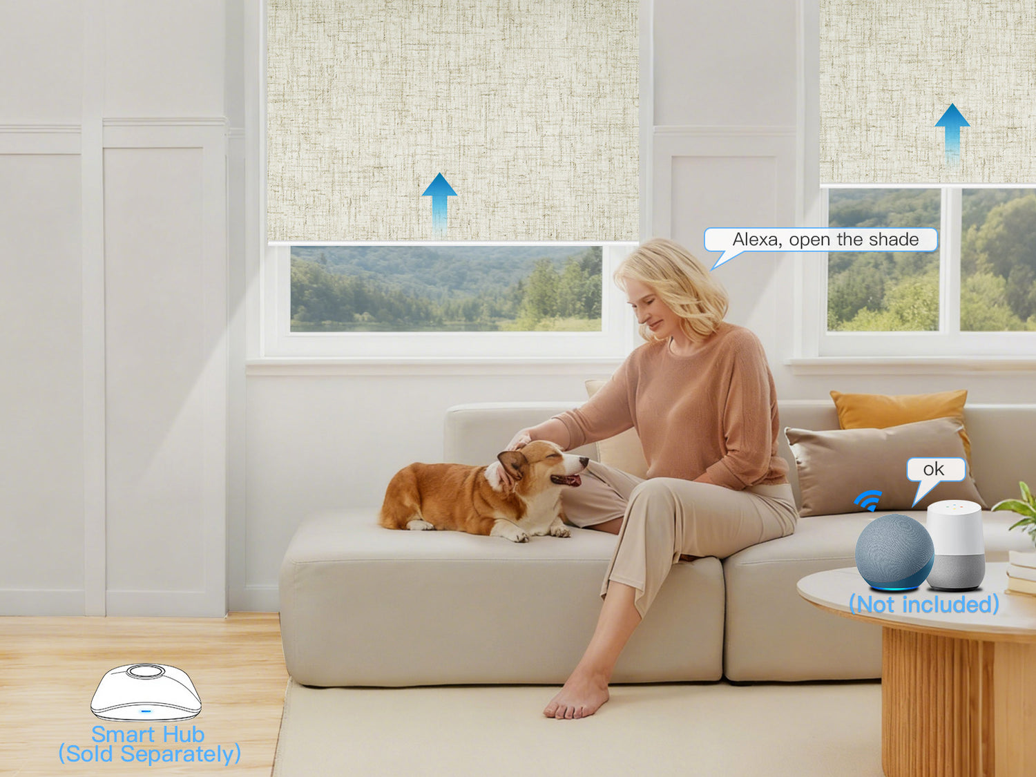 Effortlessly raise or lower the blind with a single click of the remote. Connect an RF hub to Alexa or Google Assistant for voice control, app operation, or scheduled automation.