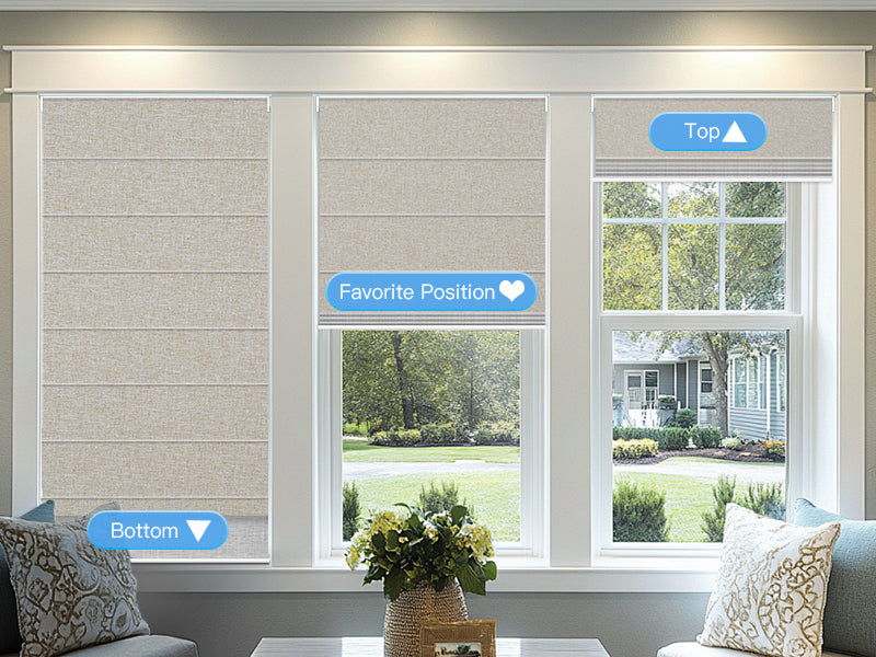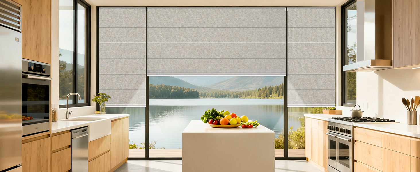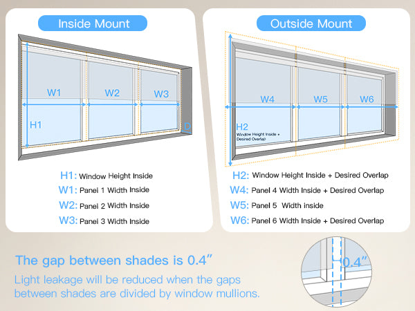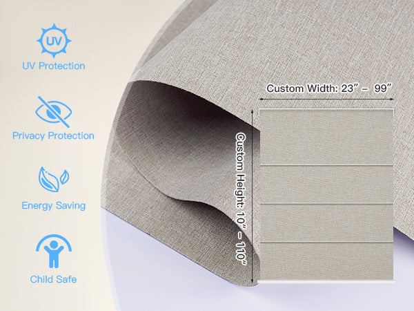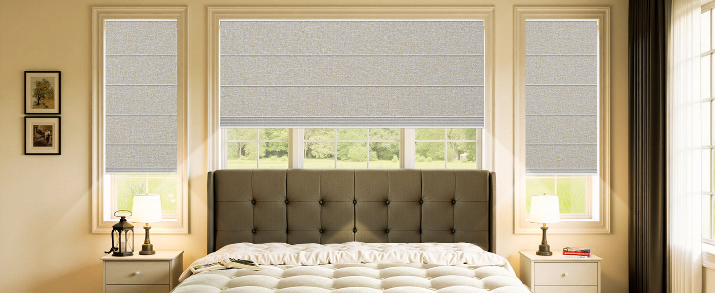 - Inside & Outside Mount Fit – Inside mount motorized Roman shades for windows require 1.77" minimum depth; provide exact inside size(no deductions). Outside mount blackout window shades: add 6" width & height to reduce light gaps.