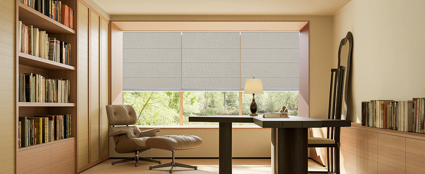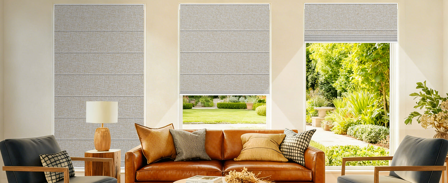 - 10O% Blackout & Privacy – Motorized blackout Roman shades made of durable polyester with the same finish on both sides. Effectively block light, UV rays, and noise, improve energy efficiency, and ensure privacy. Cordless electric Roman blinds are safe for children and pets. Ideal window shades for bedroom, living room, and office. Indoor use only.