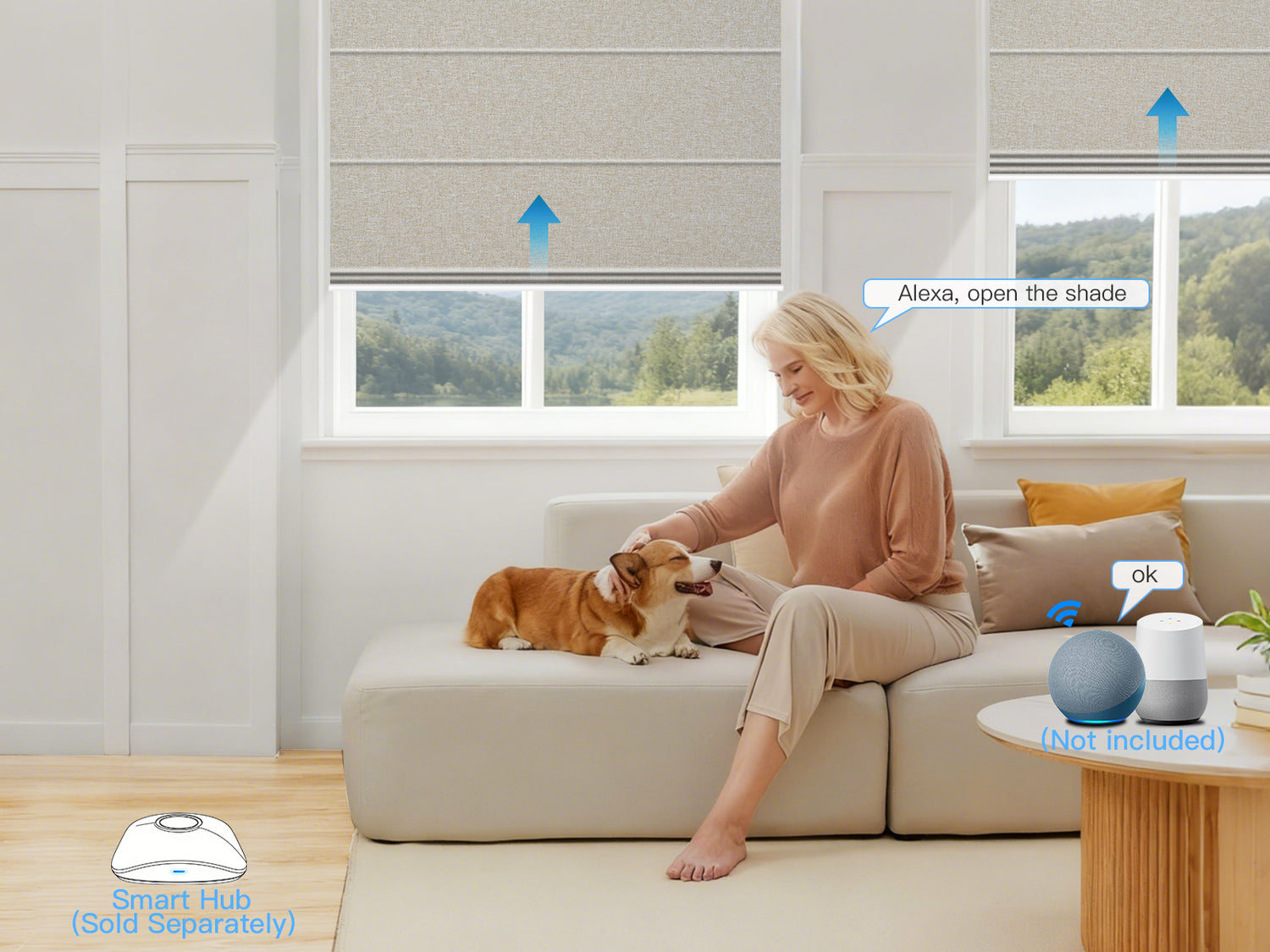 By connecting the shades to Alexa via a HUB, you can control the shades using voice commands.