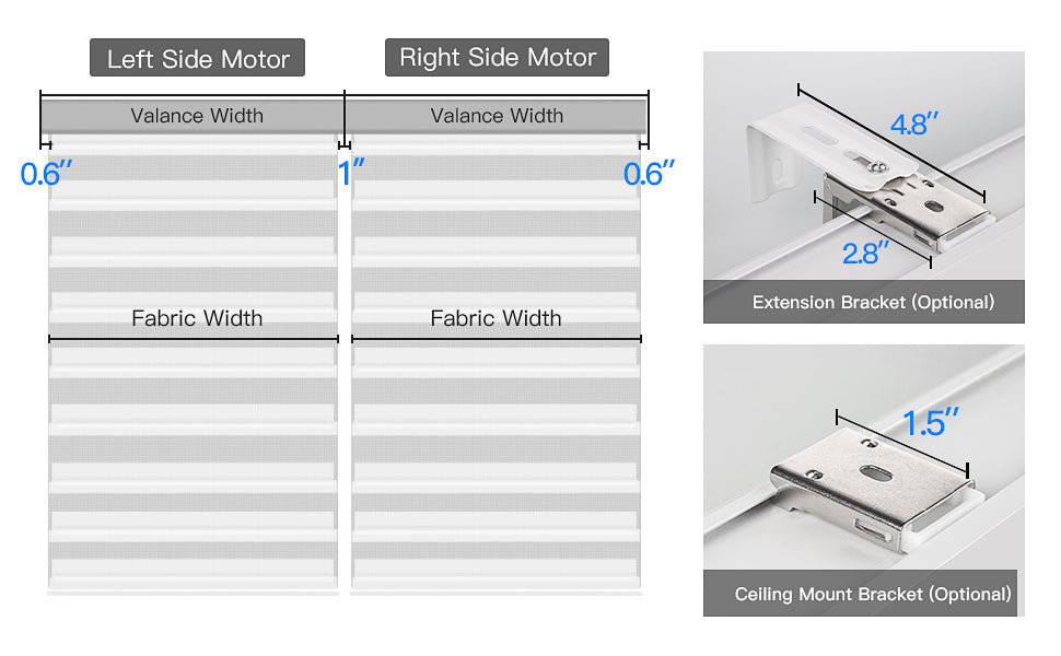 Fabric Gap: Fabric is 1" narrower than the shade. Two side-by-side blinds will have a 1" gap between fabrics.